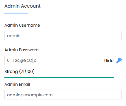 • Admin Email: Your email address. It is helpful for admin account password reset, notification, etc.